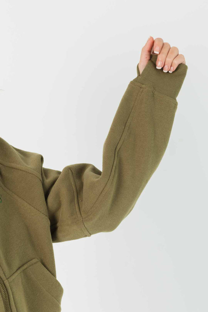 Chaqueta deportiva con capucha. Tacto suave con fleece interno para mayor calidez, bolsillos delanteros, detalles de goma elástica para ajuste perfecto en puños y cintura. Una prenda versátil tanto para tus entrenamientos como combinar en tus looks de todos los días.